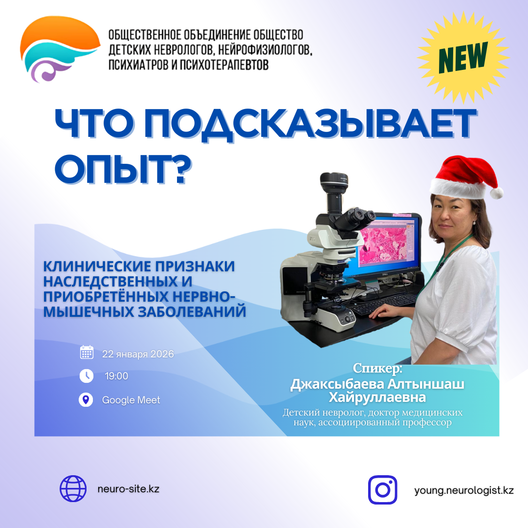 Первый спикер рубрикиДжаксыбаева Алтыншаш Хайруллаевна▪️ Президент ОО «Общество детских неврологов, нейрофизиологов, психиатров и психотерапевтов»▪️ Детский невролог▪️ Доктор медицинских наук▪️ Ассоциированный профессор Запись встречи